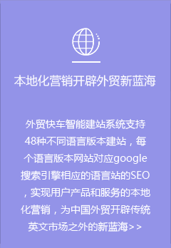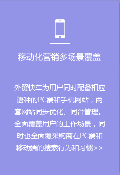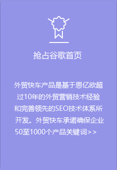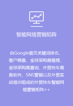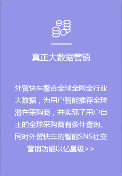 外貿(mào)快車是基于大數(shù)據(jù)和云計(jì)算的智能網(wǎng)絡(luò)營(yíng)銷系統(tǒng)平臺(tái)。依托五大功能系統(tǒng),幫助外貿(mào)企業(yè)智能創(chuàng)建多語種營(yíng)銷型網(wǎng)站和先進(jìn)的VR展示網(wǎng)站,通過采購(gòu)商數(shù)據(jù)挖掘,以及SEO、SNS等多渠道網(wǎng)絡(luò)營(yíng)銷,實(shí)現(xiàn)全球推廣和新興市場(chǎng)開發(fā)。
