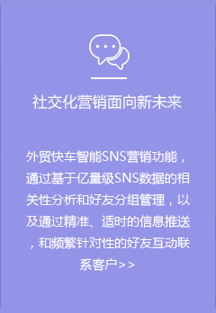 潛在采購(gòu)商和詢盤客戶,都進(jìn)行SNS深度挖掘了解企業(yè)情況。SNS可以讀取外貿(mào)快車網(wǎng)站上的產(chǎn)品進(jìn)行發(fā)布,發(fā)布后留下該產(chǎn)品的網(wǎng)址讓有興趣的用戶再點(diǎn)擊進(jìn)入外貿(mào)快車網(wǎng)站,為外貿(mào)快車網(wǎng)站帶去流量,再轉(zhuǎn)換成詢盤。同時(shí),SNS營(yíng)銷系統(tǒng)又可以進(jìn)行商業(yè)公司挖掘,挖掘出的商業(yè)公司與潛在采購(gòu)商進(jìn)行數(shù)據(jù)對(duì)比融合,更進(jìn)一步撐握企業(yè)情況,再進(jìn)行精準(zhǔn)聯(lián)系,獲得SNS詢盤。